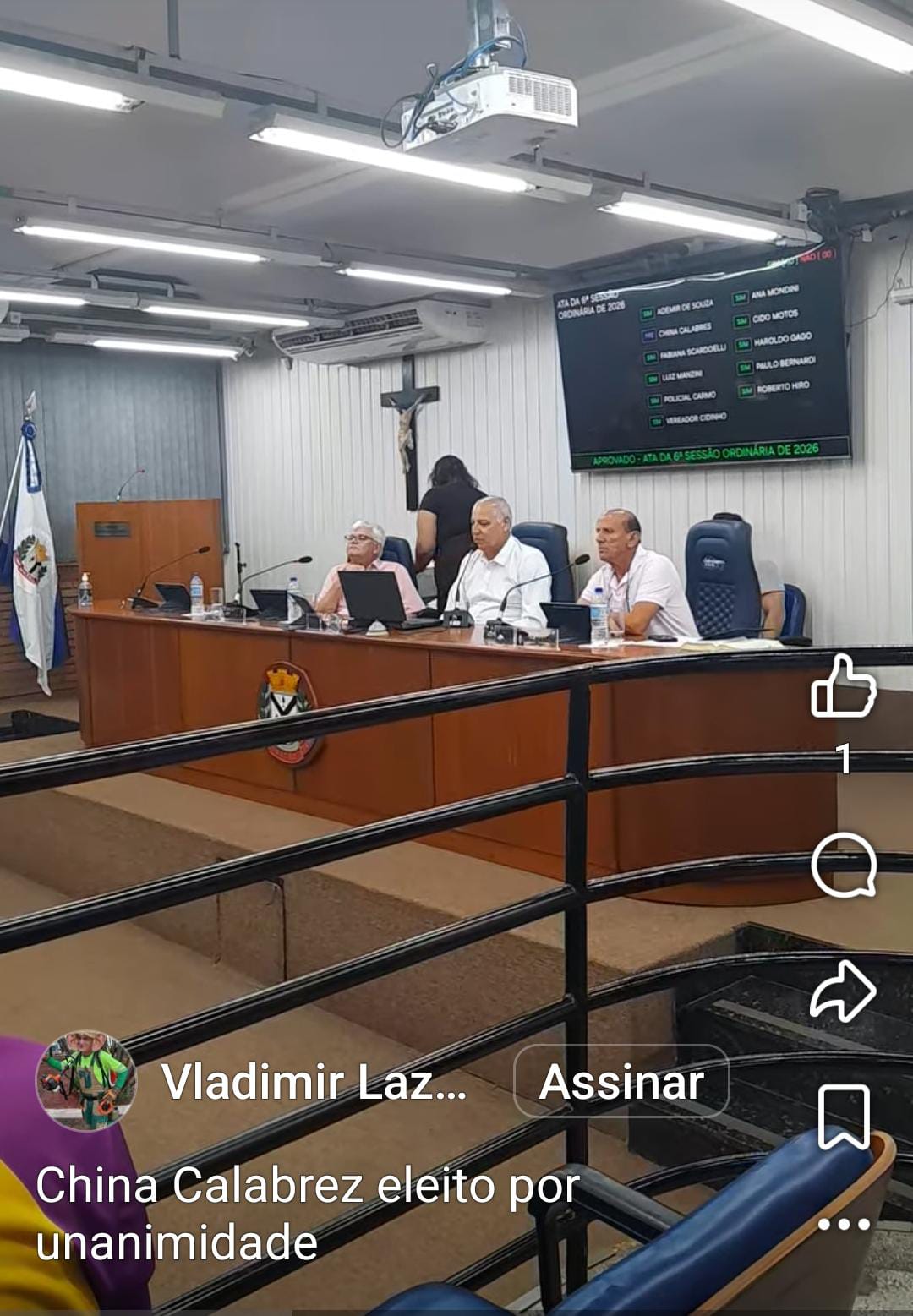 China Calabrês foi eleito por unanimidade como novo presidente da Câmara Municipal