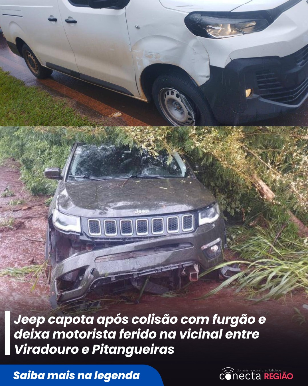Acidente entre Jeep e furgão deixa um ferido em vicinal entre Viradouro e Pitangueiras